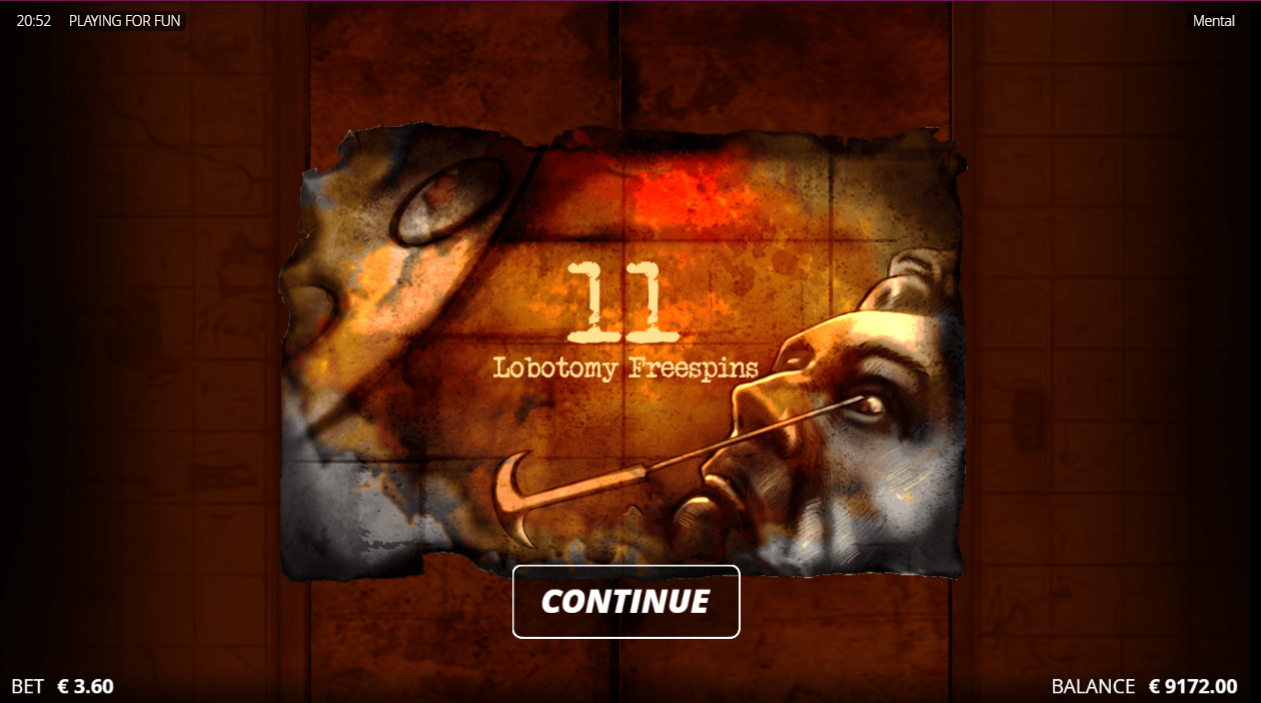 - Play Mode - Mental is a 5x3 reel video slot game with xNudge ®, xWay ®, xSplit ®, Fire Frames, Enhancer Cells, Dead Patient, Autopsy, Lobotomy and Mental Free Spins.