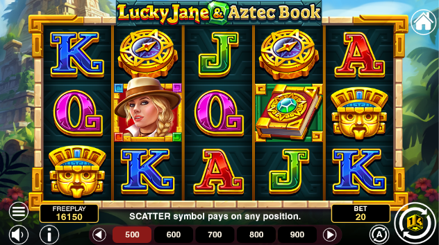 - Play Mode - Lucky Jane & Aztec Book is a 5x3 reel video slot game with 243 paylines and Free Spins, Bonus Game and Scatter symbols.