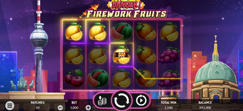 - Play Mode - Banger! Firework Fruits is a 5x3 reel video slot game with 10 paylines and a Fireworks Wild symbol that explodes on the screen.