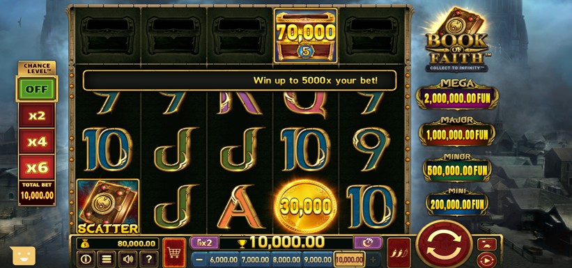 - Chance Levels – Book of Faith™ has Chance Levels, which allow you to adjust the chance by x2, x4 or x6. You can set the Chance Levels to OFF.