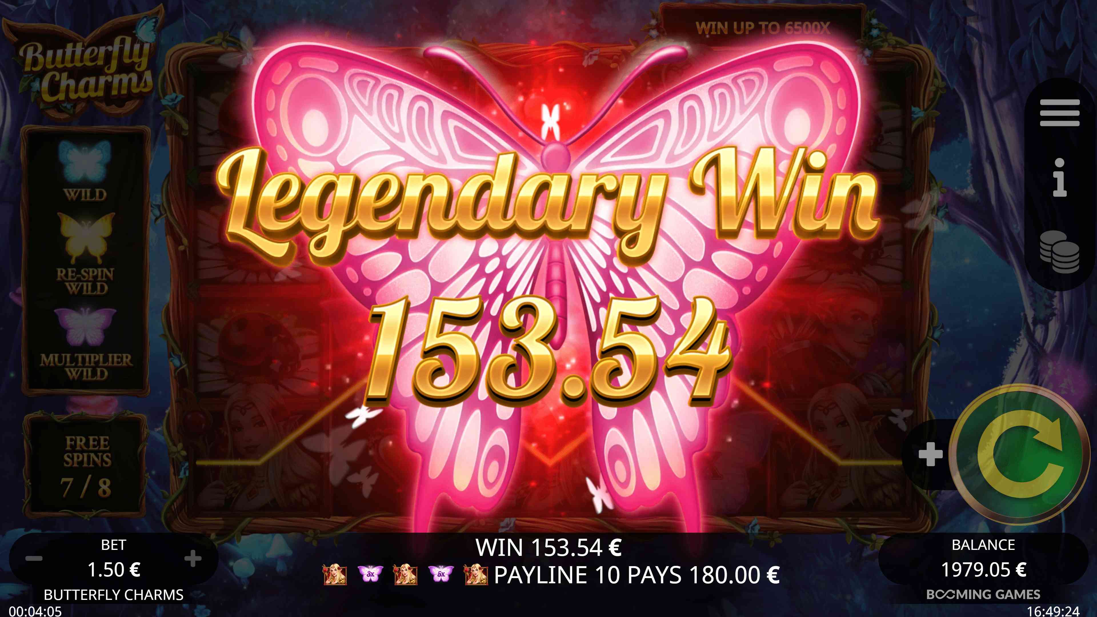 - Re-Spin Wilds - the yellow butterflies replace all symbols except for the Scatter, Wild and Multiplier Wild. They only happen during the Random Wilds or Re-Spin features to award more Free Spins.