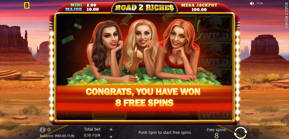 Take a Wild ride on the Road 2 Riches when you drive at top speed down Route 66, looking for a scatter of wild wins in the race to win cash and diamonds in this dynamic slot game from Bgaming. As you speed along the desert roads looking for the epic Jackpots, you will become fully immersed in playing Road 2 Riches. Purr!
