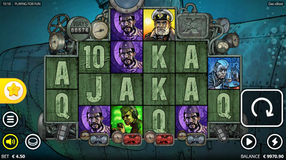 - Play Mode - Das xBoot is a 4-4-4-4-4-4 reel video slot game with xNudge Wild, xWays, xBomb Wild Multiplier, Silent Hunter Spins, Wolf Pack Spins, and Das Gold Des Roter Teufel (Red Devil’s Gold) features.