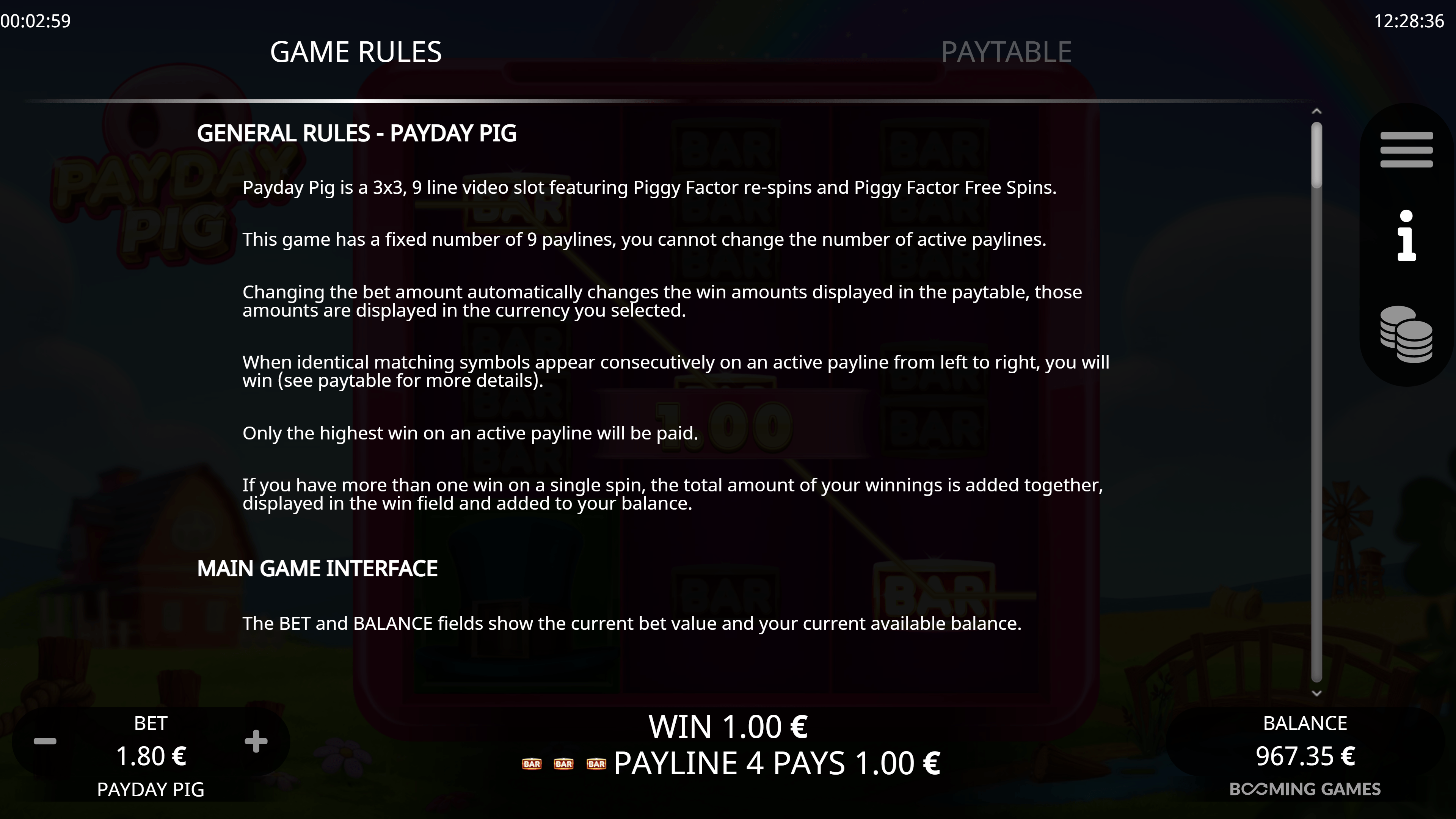 PayDay Pig is fun and easy to play, and I especially like its simplicity which matches the countryside theme. If you enjoy good ol’ 3-reel slots, this is your chance to go down the memory lane.
