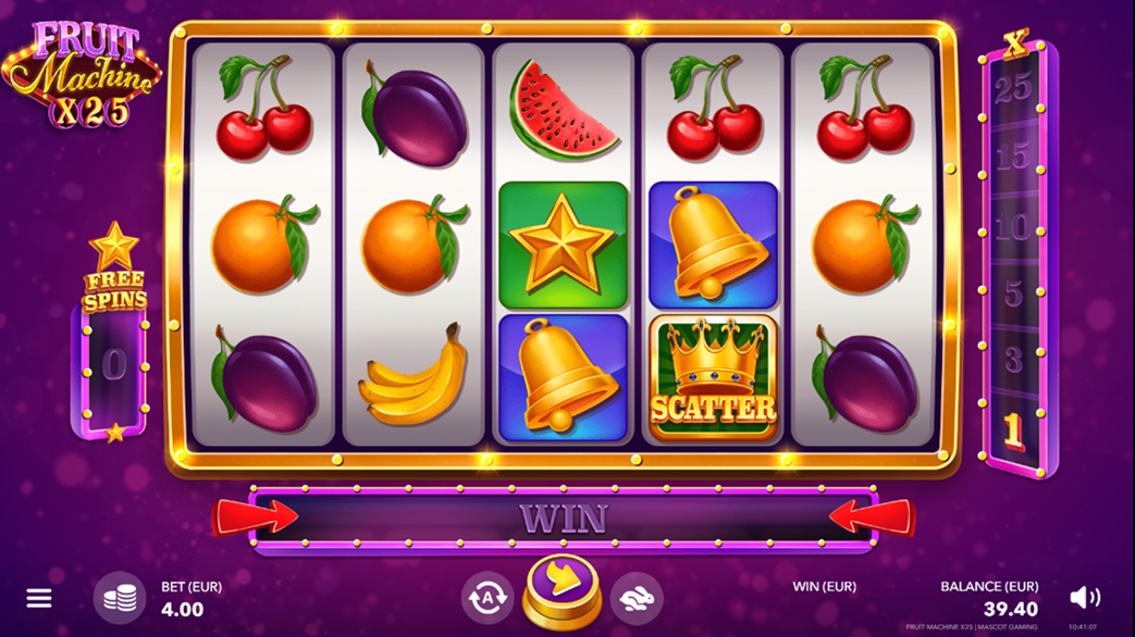 - Minimum and maximum bet - Fruit Machine x25 has a minimum bet of 0.20 and 40.00 as a maximum bet.