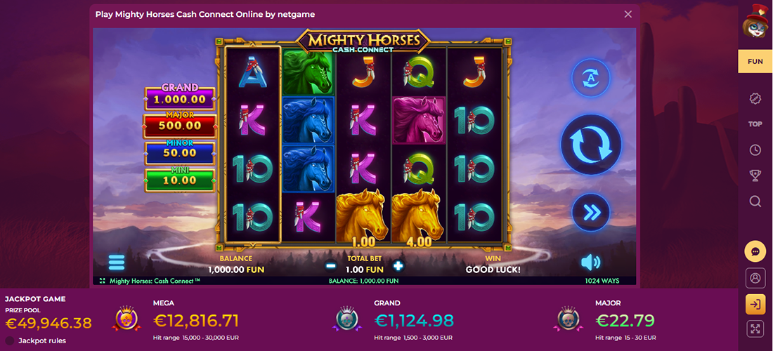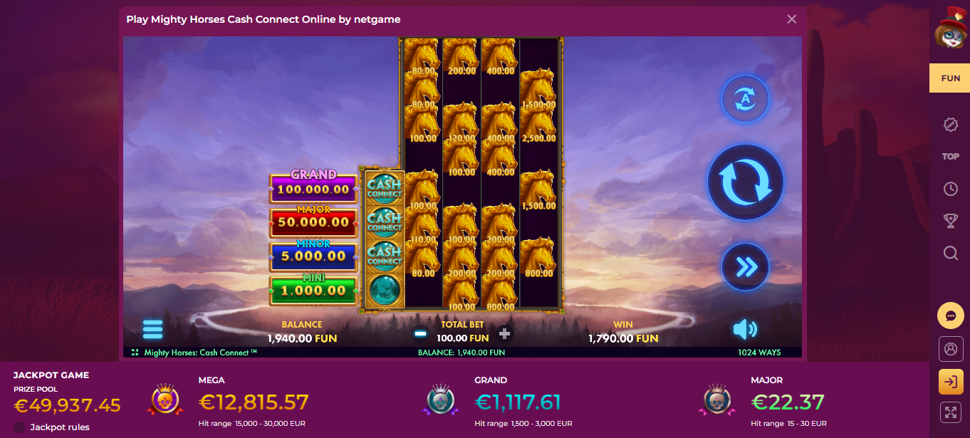 With all these fantastic chances to get Cash Prizes, Jackpots and Bonuses, Mighty Horses Cash Connect comes with an excellent recommendation from me.