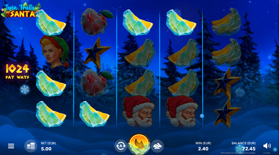 - Medium volatility – Twin Fruits of Santa has a medium volatility for a festive vibe.