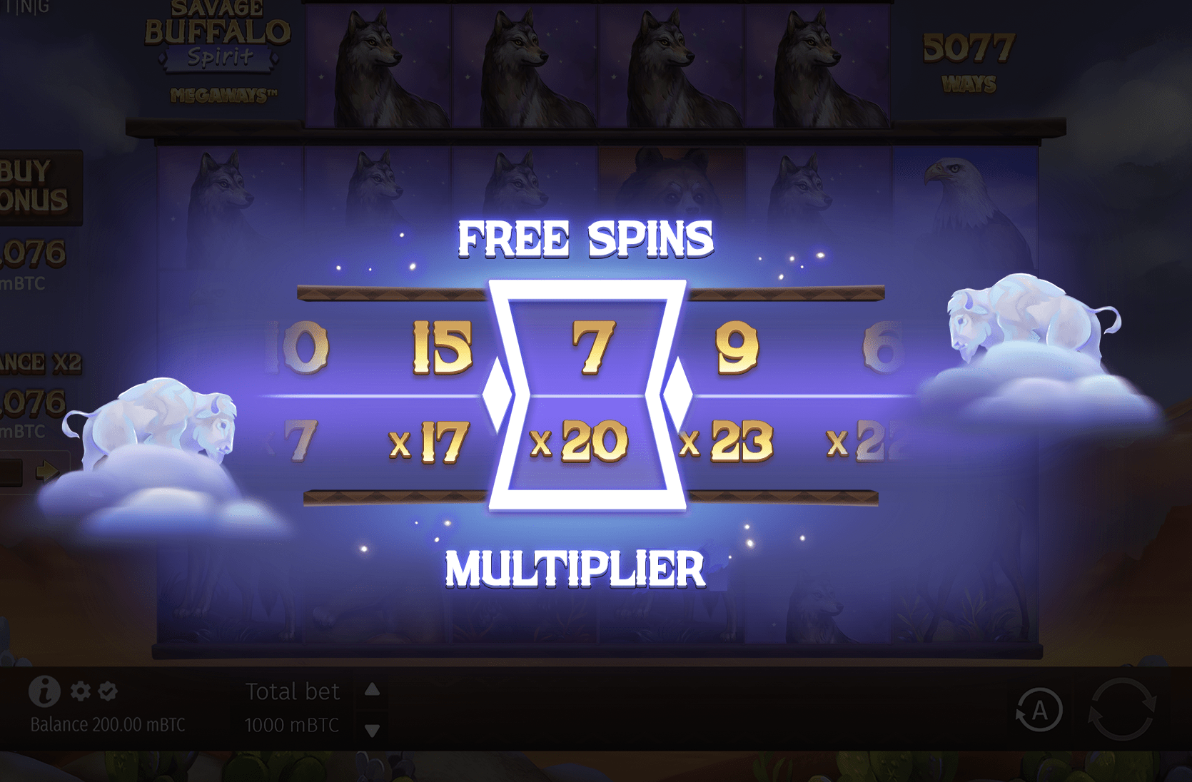 So, when this Savage Buffalo Spirit charges onto your screen, you experience its power because it shows up as a Wild symbol and has a x2 multiplier. There are also Wilds, Scatters and Free Spins.