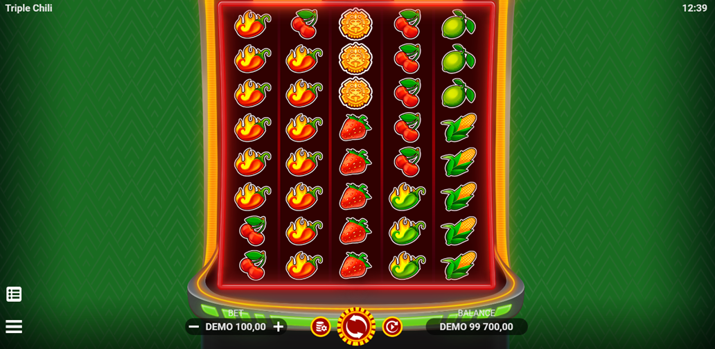 - Play Mode – Triple Chili is a 6x8 reel video slot game with 60 paylines, special reels designed for big wins, with a Wild Symbol.
