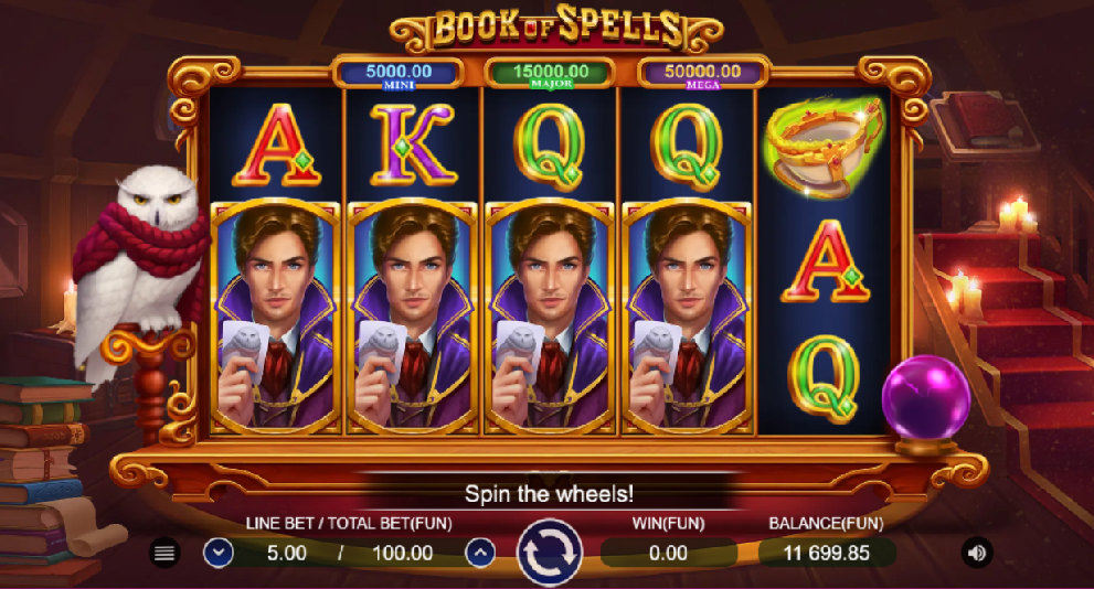 - Magical graphics – With Owls and Books of Spells, the magical graphics of the Book of Spells Hold ‘n’ Win will enchant you with the realistic look and feel of the game, and you can hunt for the Jackpot Medallions while playing.