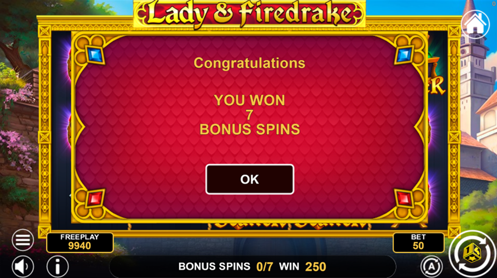 - Minimum and maximum bet – Lady & Firedrake starts at 0.10 minimum bet and adds more fire with 50.00 as maximum bet.