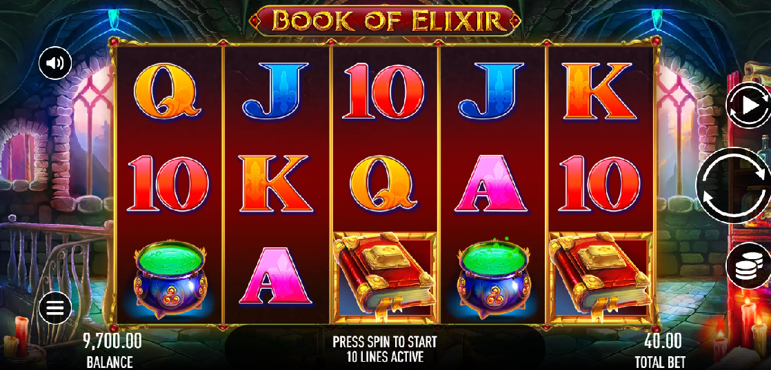 - Play Mode - Book of Elixir is a 5x3, 5-reel video slot game, which has a Bonus feature and 10 paylines. The game has 10 symbols, a Scatter symbol, and a Special Expanding Symbol and Free Games.